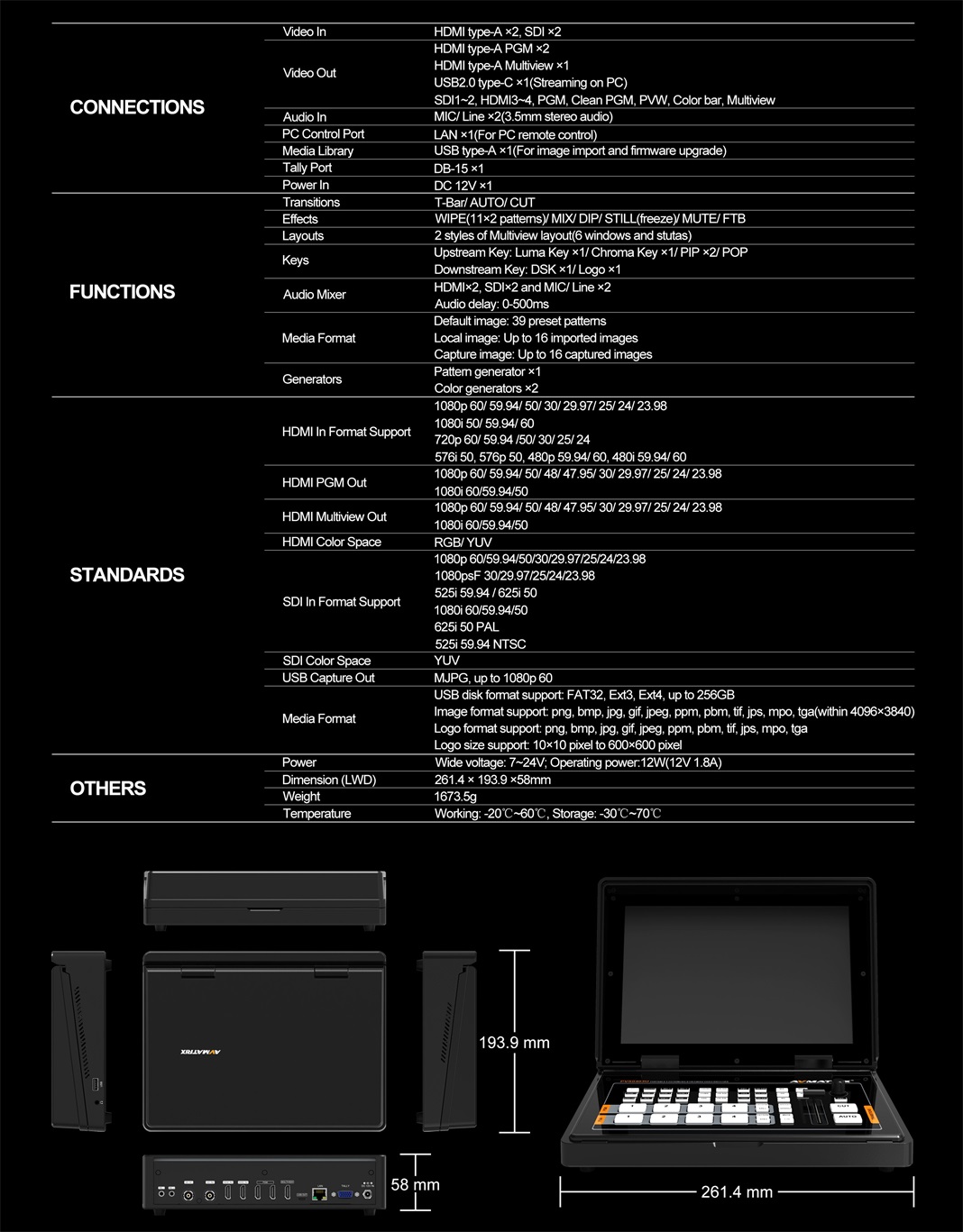 Avmatrix представила новый видеомикшер со встроенным экраном PVS0403U. По своим возможностям является развитием модели HVS0402U, при этом дополнительно имеет встроенный экран и входы 3G SDI.
