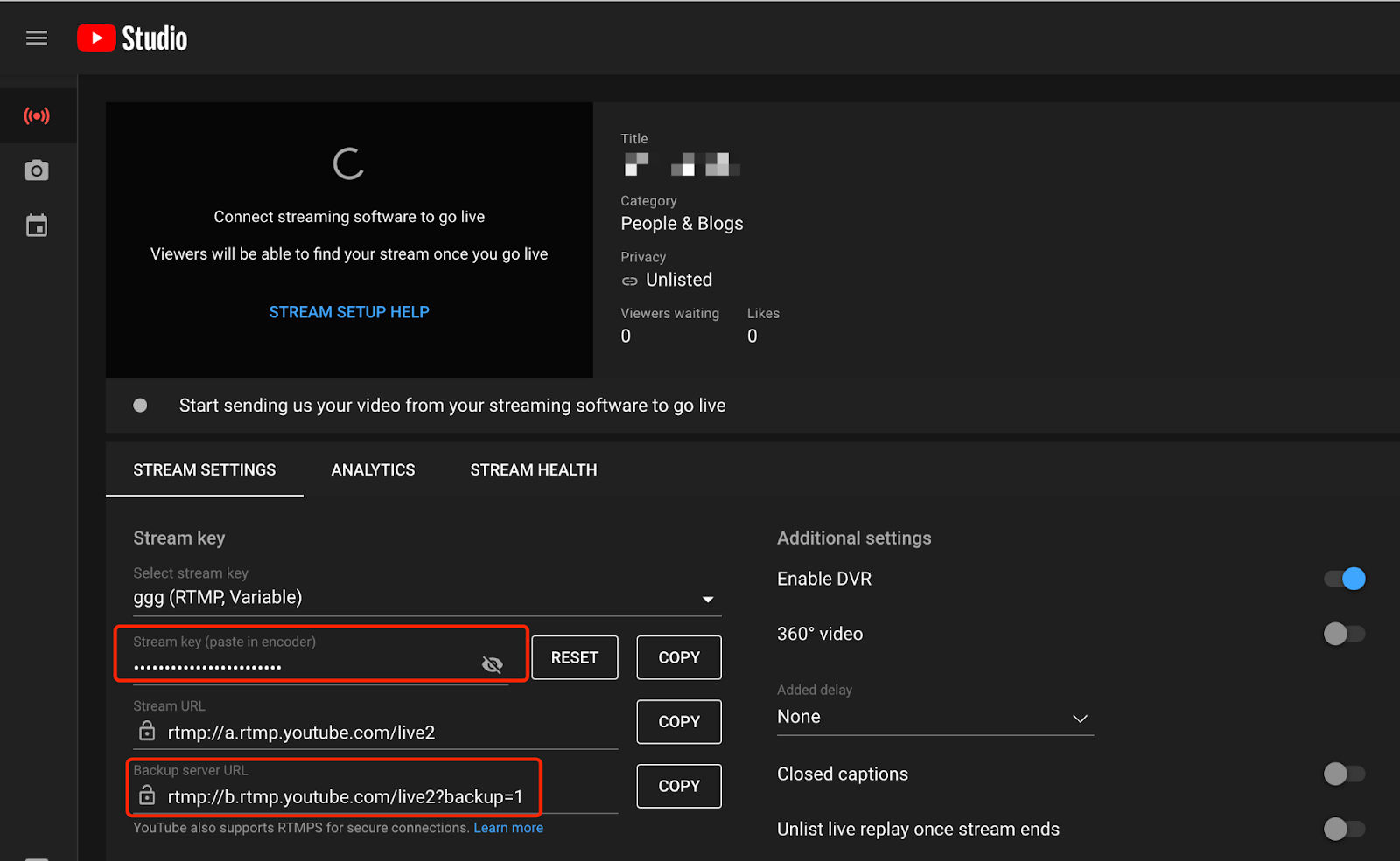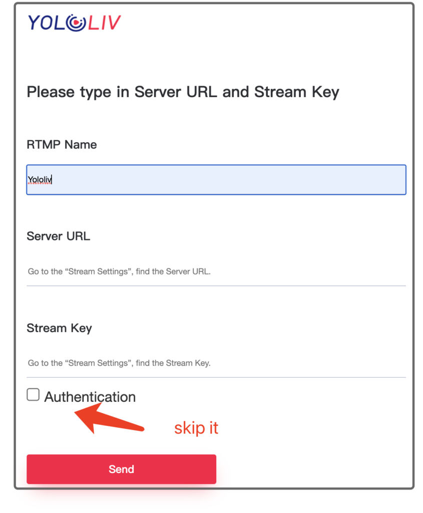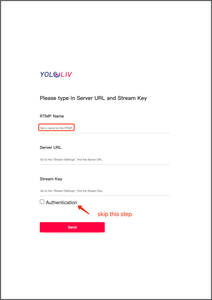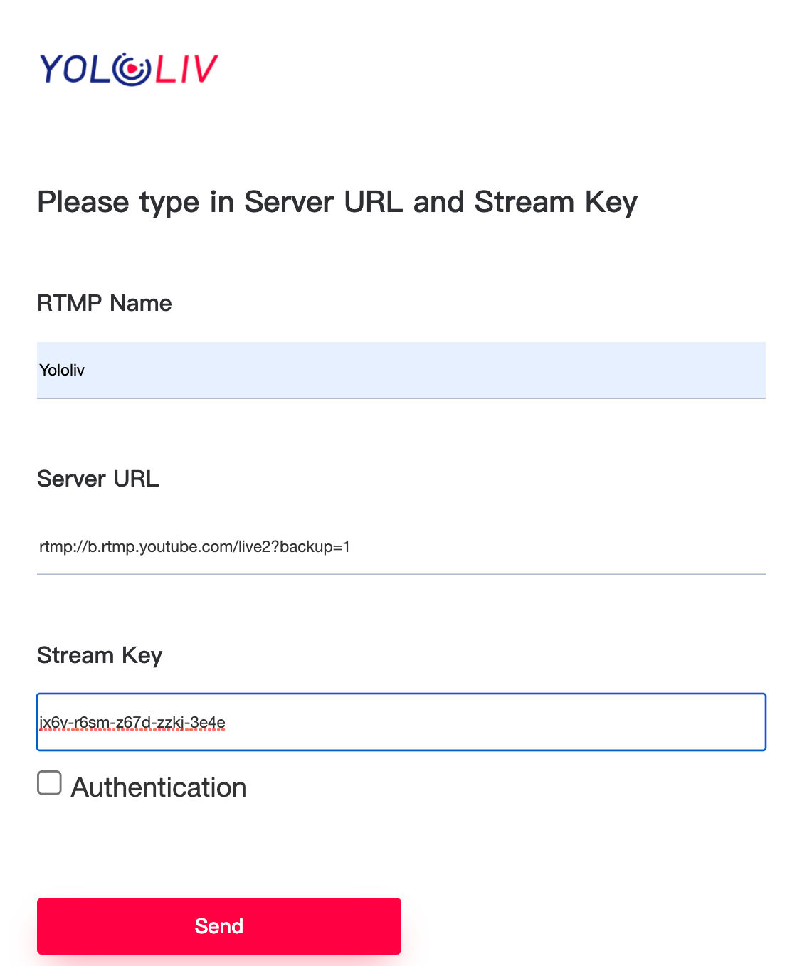 Перейдіть за посиланням у листі, введіть URL-адресу сервера та Ключ потоку платформи, на якій ви хочете увімкнути трансляцію. Ви можете встановити назву цієї платформи як назву вашого RTMP, наприклад Facebook, Youtube.