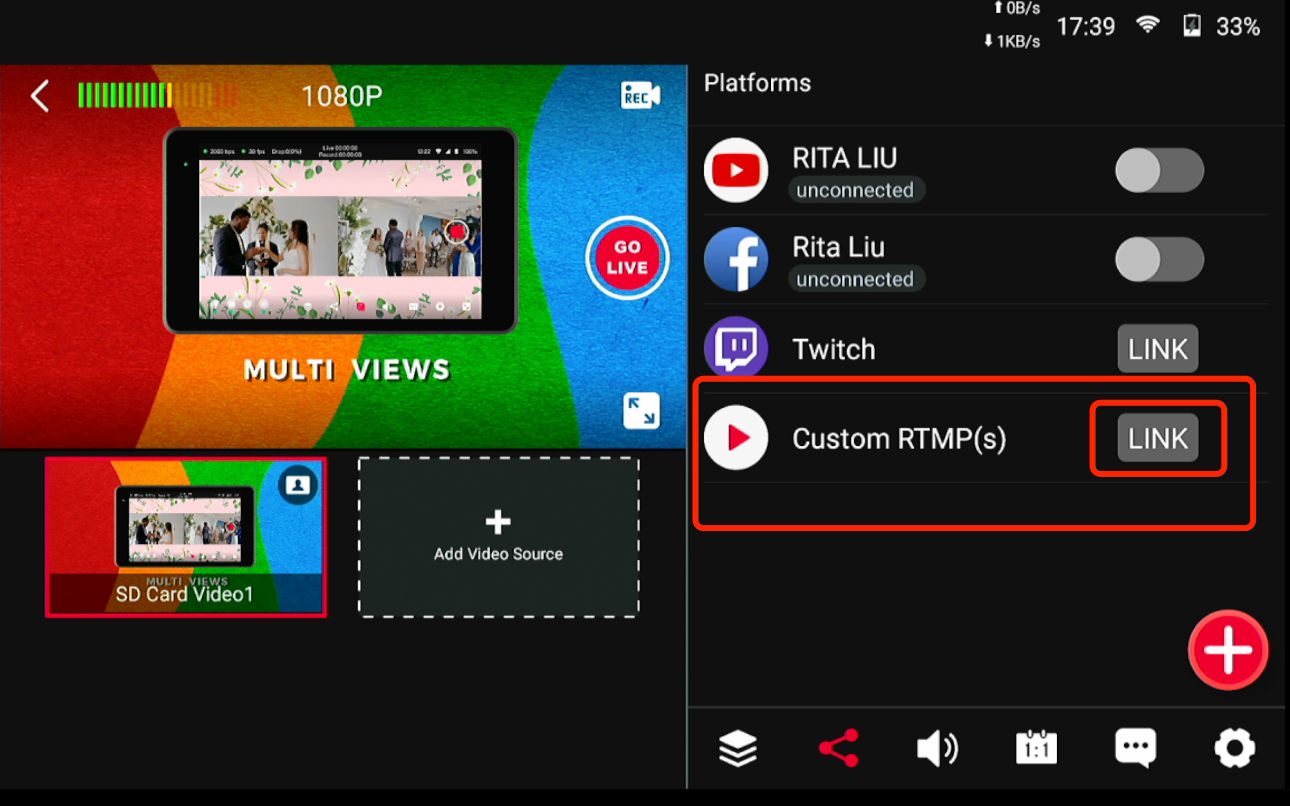 Крок 7. Поверніться до YoloBox/YoloBox Pro, Кастомний RTMP, який ви встановили, з'явиться у вкладці Платформи.