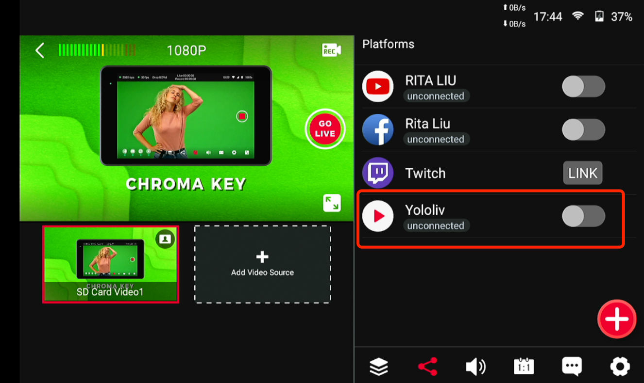 Крок 7. Поверніться до YoloBox/YoloBox Pro і перевірте, чи з'явилася назва кастомного RTMP.