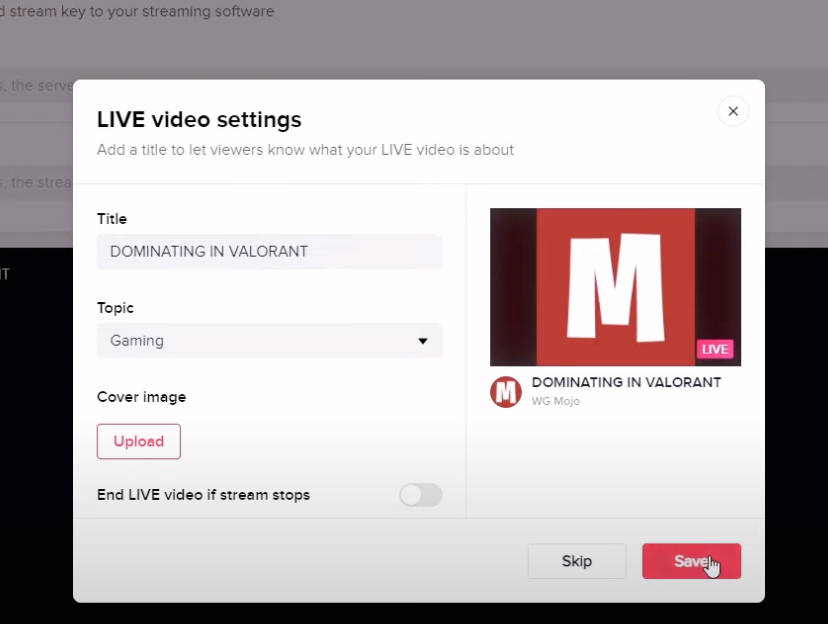 Крок 6. Заповніть ключ трансляції та URL-адресу сервера, скопійовані з панелі керування TikTok.